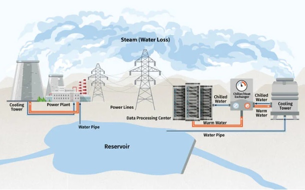 ويشير بعض الدراسات إلى تحدّيات مرتبطة باستخدام الذكاء الاصطناعي لكونه مستهلكًا للمياه في الكثير من الأحيان، وهو ما تظهره البصمة المائية للذكاء الاصطناعي، حيث تستهلك مراكز البيانات التي تدعم التعلّم الآلي كمياتٍ كبيرةً من المياه للتبريد. في الخليج، قد يصل استهلاك المياه السنوي المرتبط بالذكاء الاصطناعي في مراكز البيانات إلى 426 مليار ليترٍ بحلول عام 2030. إلّا أنّ هناك افكارًا لا تزال قيد الدراسة حول استخدام تصاميم حديثة للتبريد بالهواء، واستخدام الطاقة الحرارية الأرضية، أو استخدام مياه الصرف الصحي المعالَجة بدلًا من المياه العذبة، إذ تعدّ هذه الحلول ضرورةً حتّى لا يتحوّل الذكاء الاصطناعي إلى تكنولوجيا مُستهلِكة للمياه.